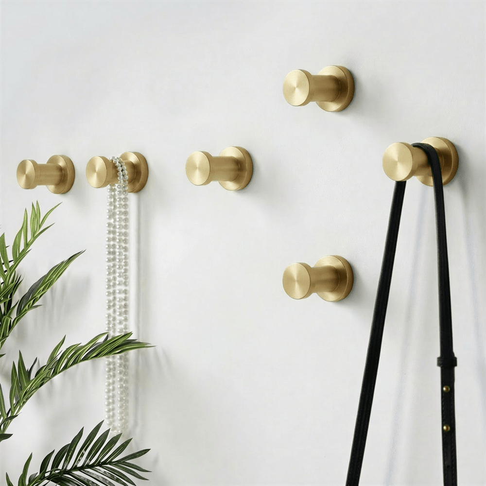 The hook is crafted from solid brass, offering durability along with a refined, warm appearance.