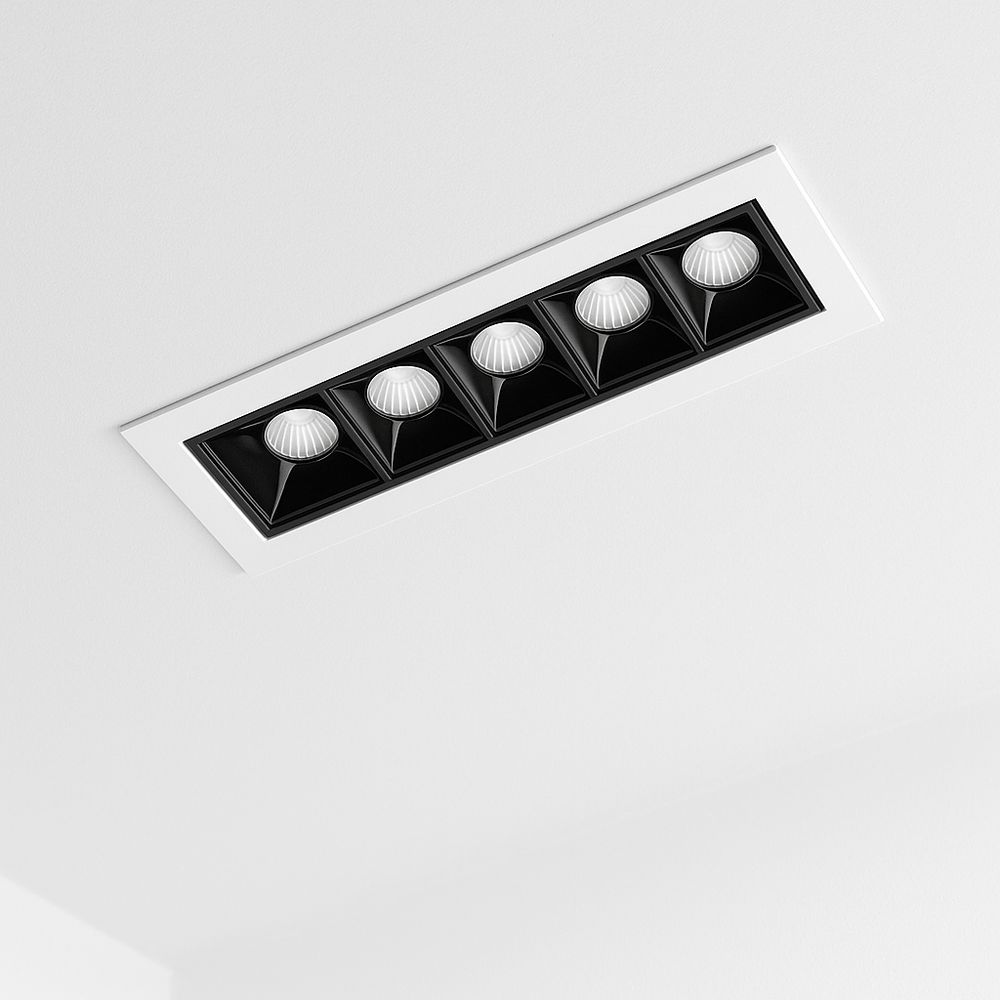 Modern, rectangular downlight with a recessed finish that blends seamlessly into ceilings.