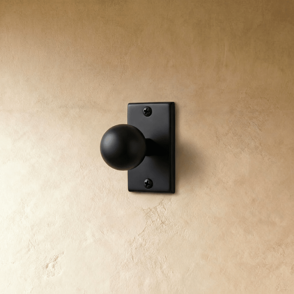 It features a smooth spherical knob mounted on a rectangular backplate for an architectural lo