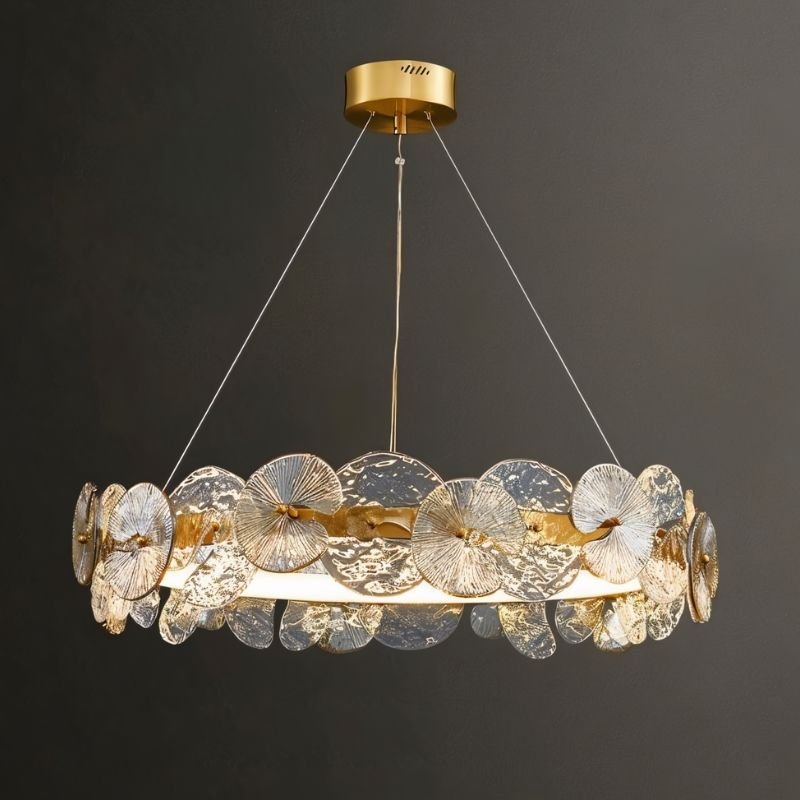 Textured glass and metal design scatters light dynamically, enhancing ambiance and depth — perfect for dining rooms, living areas, and high-ceiling foyers.