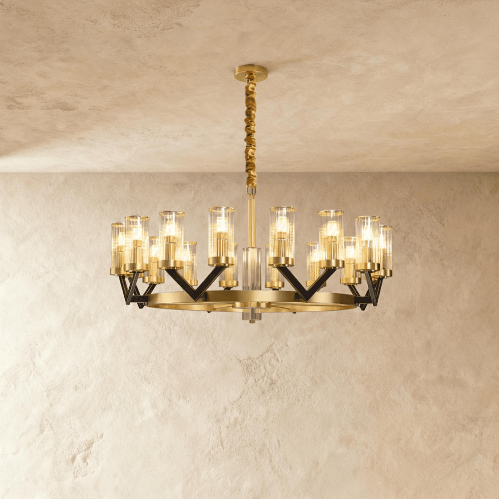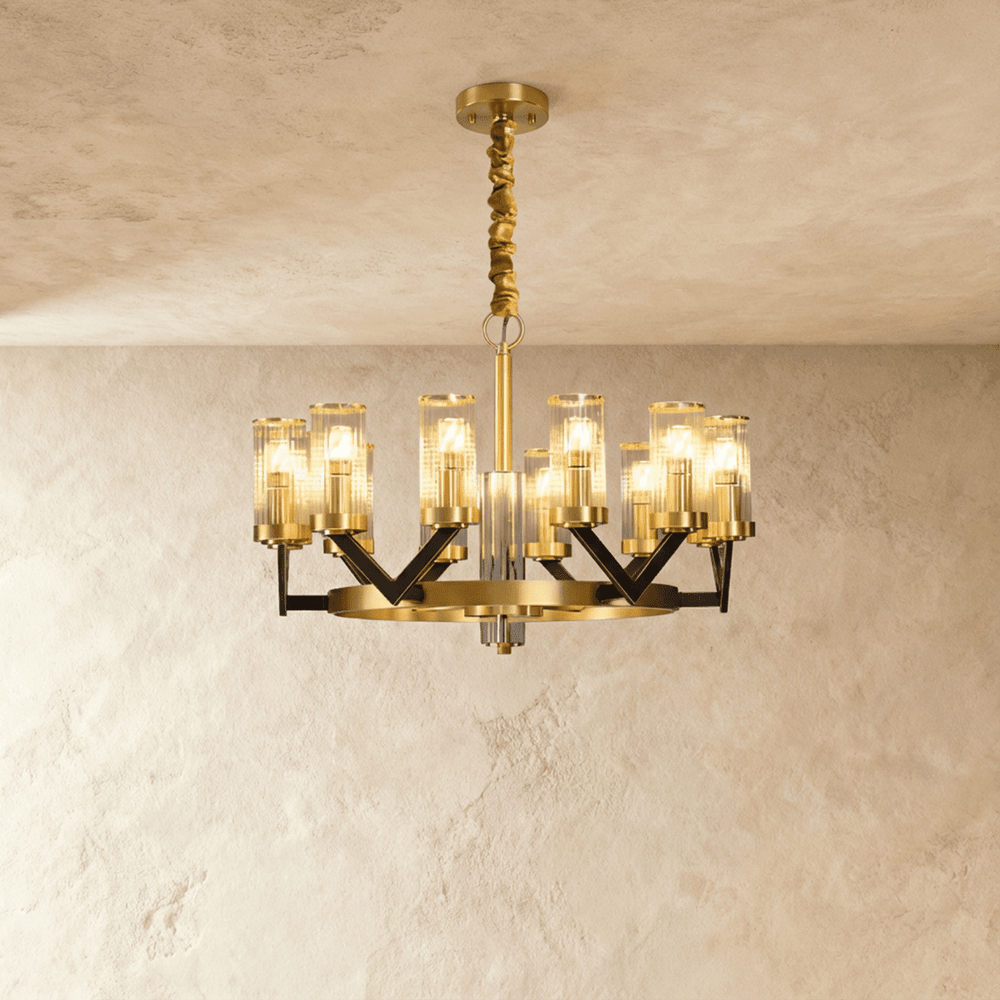 The Sovra Chandelier is expertly crafted using premium copper and glass for durability and elegance.