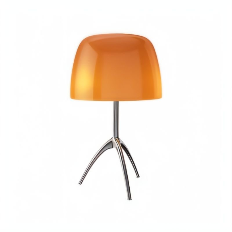 The Splendore Table Lamp is the ideal finishing touch for any house. A blown glass shade with a polished finish, a white inner layer, and a colorful outer layer emits a warm, bright, diffused light that harmonizes beautifully with your interior. Available with a base finished in either polished chrome or copper and shade in the colors white, cream, orange, red, and turquoise. The Splendore, which is distinguished by its blown glass diffuser and futuristic-looking metal tripod, is a true design classic, ideal for adding a touch of mid-century elegance to any area in your home, but it works especially well on the bedside table.