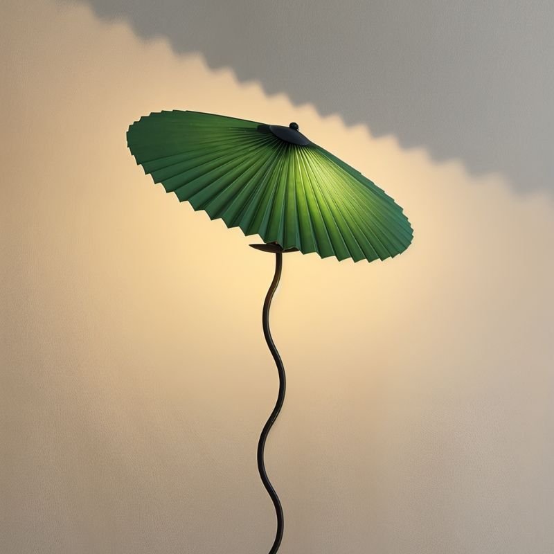 The Squiggle Floor Lamp for some fun lighting. This art deco lamp features a long wavy stand and a pleated linen lampshade. The piece has a very vintage feel thanks to the shade, which provides brilliance, and a designer touch, and casts a beautiful warm glow. With its draped pleats, wavy stem, and polished iron base, the Squiggle radiates a charming and minimalist ambiance. This unique and whimsical floor lamp would be a perfect addition to a living room corner, next to a reading chair, or in a bohemian-inspired space.