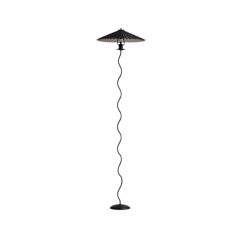 The Squiggle Floor Lamp provides a beautiful warm glow, thanks to its pleated linen lampshade, which adds a vintage touch and a charming, minimalist ambiance to any space.