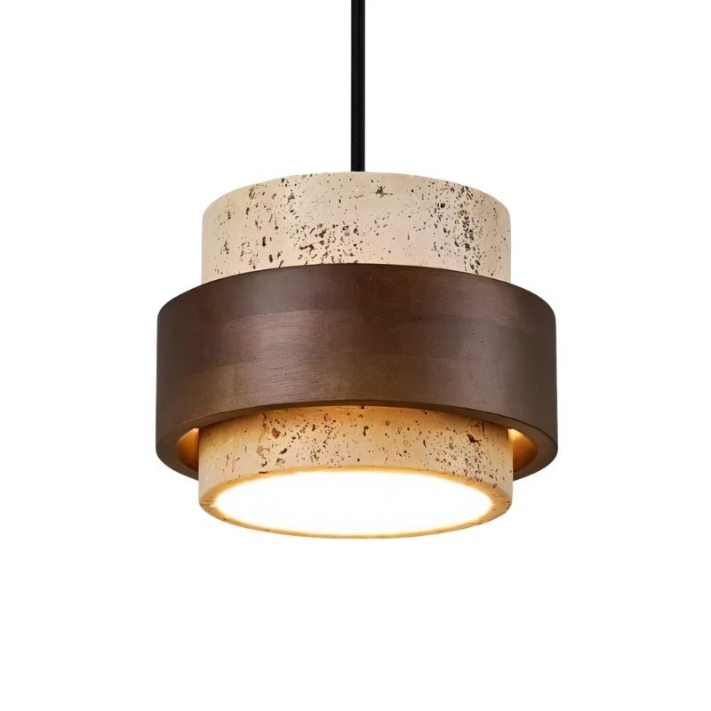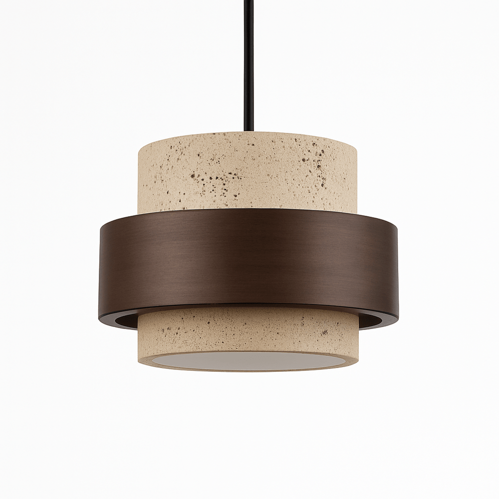 The Stellis Pendant Light is a sleek light fixture crafted with a combination of natural stone and dark wood, featuring a cylindrical design that blends texture and warmth. Its minimalist style complements modern, Scandinavian, and industrial interiors. Perfect for bedrooms, living rooms, dining areas, or hallways, this pendant light provides soft illumination while serving as a striking decor element.