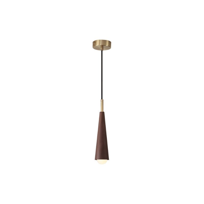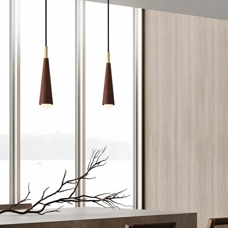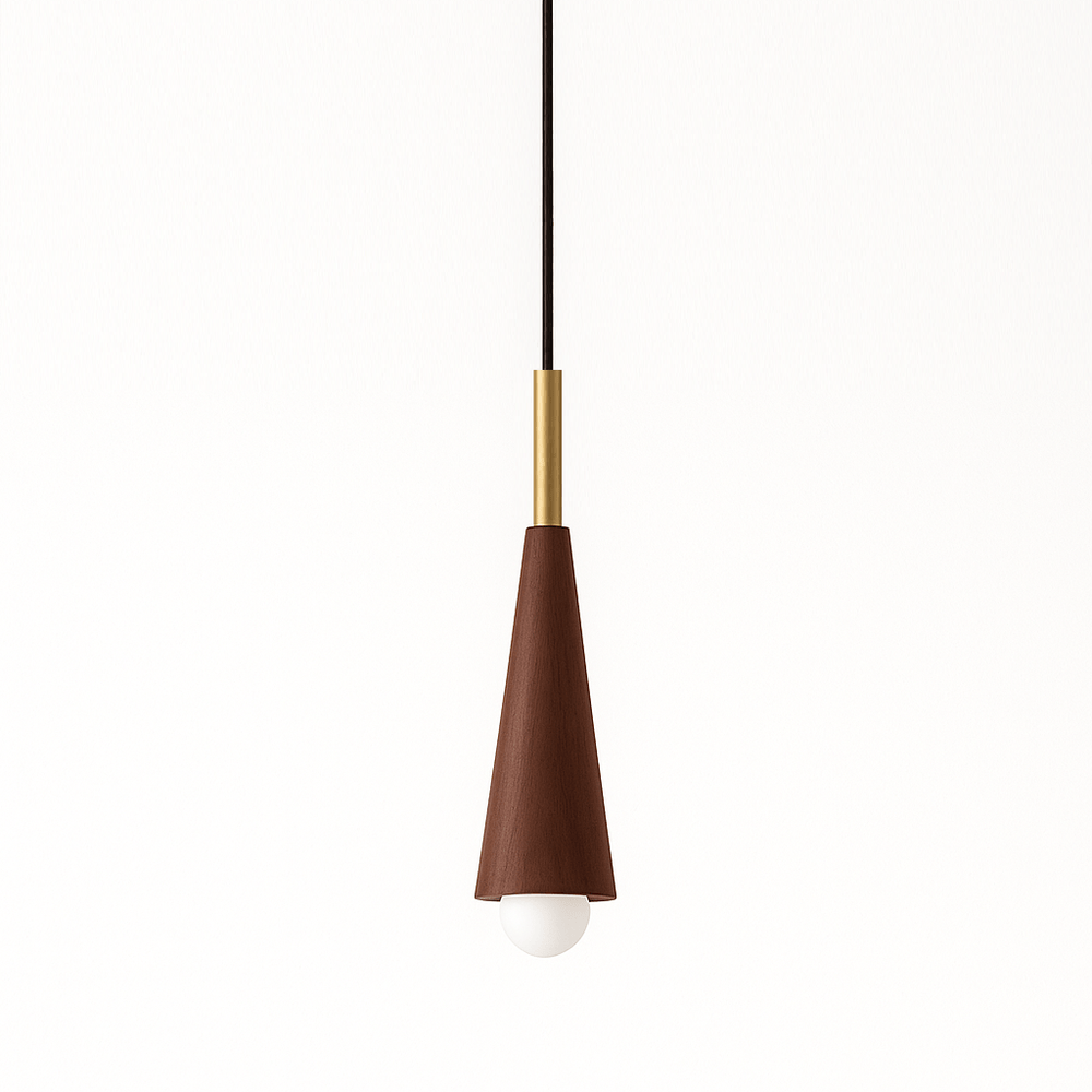The Svelora Pendant Light boasts a sleek conical design crafted from premium wood and copper, blending natural textures with modern elegance. Available in log wood and walnut wood finishes. The copper accents add subtle sophistication, making it a versatile choice for dining spaces, bedrooms, or modern interiors. This pendant light combines functionality and style, complementing both contemporary and rustic themes.