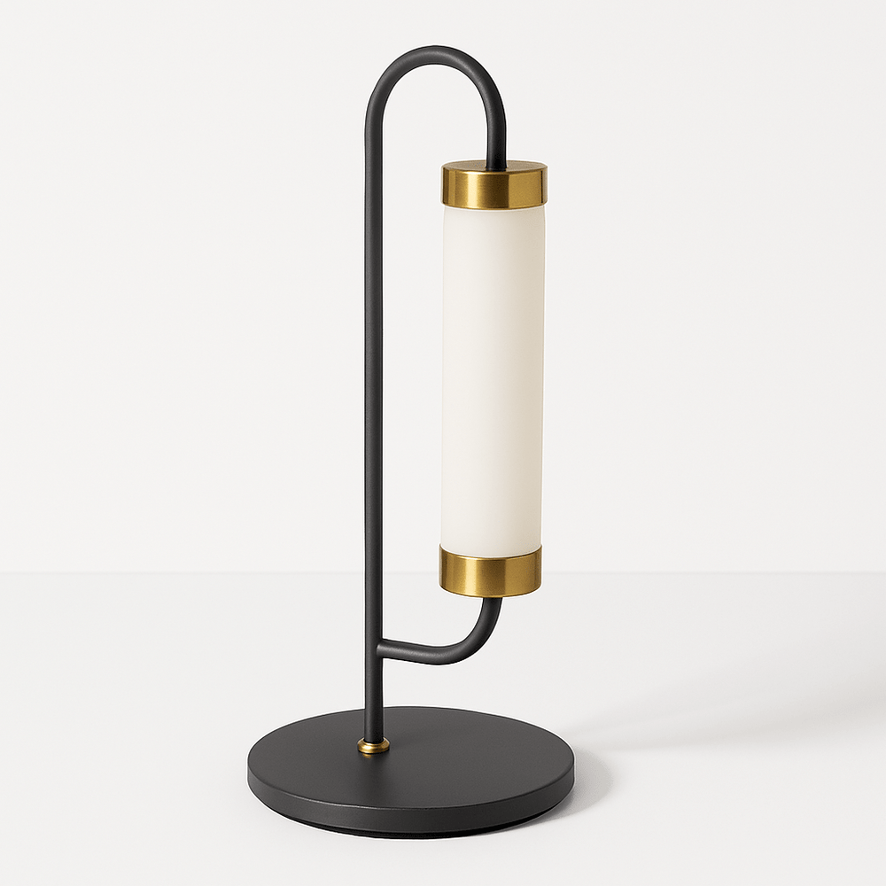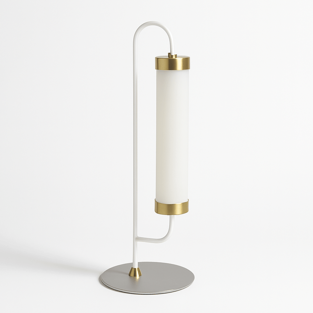 The Tami Table Lamp is a modern light fixture with a sleek glass cylindrical body and gold-tone metal accents. Its minimalist design makes it ideal for contemporary interiors, adding a sophisticated touch to living rooms, bedrooms, offices, and reading corners. The soft glow from the glass creates an elegant ambiance, perfect for any modern space.