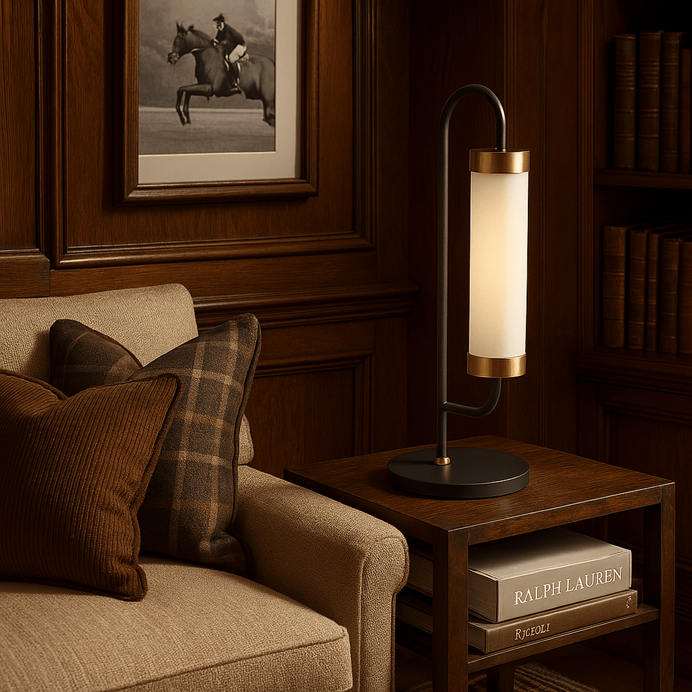 Warm ambient light from the sleek glass design enhances cozy spaces, while gold accents add a sophisticated touch — perfect for living rooms, bedrooms, or reading nooks.