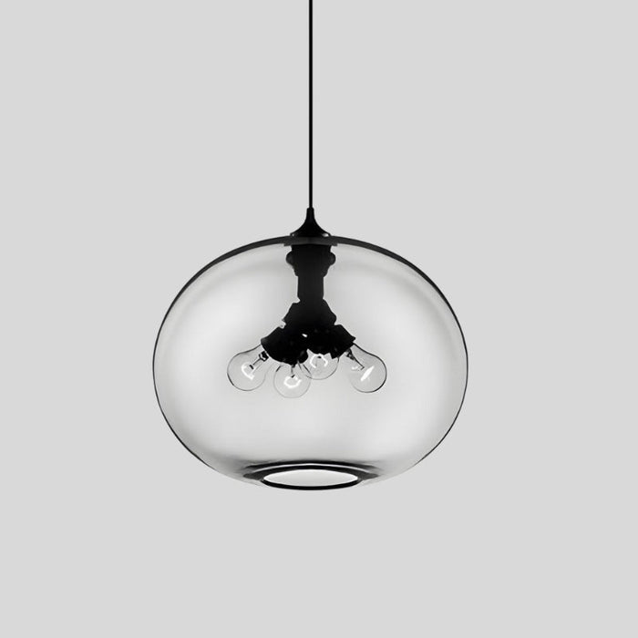 The Tovara Pendant Light combines glass and iron in a bold, modern design. Its smoked glass shade forms a smooth, rounded silhouette, highlighting exposed bulbs in a clustered arrangement for optimal illumination. The semi-transparent glass diffuses light softly, creating an inviting ambiance while making a strong visual statement. Ideal for living rooms, dining areas, and entryways, this versatile light fixture complements industrial, minimalist, and mid-century interiors.