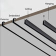 Embedded (Recessed): Cut a ceiling slot to fit the track body. Slide the channel into the opening and screw it into joists or framing using the provided holes.