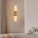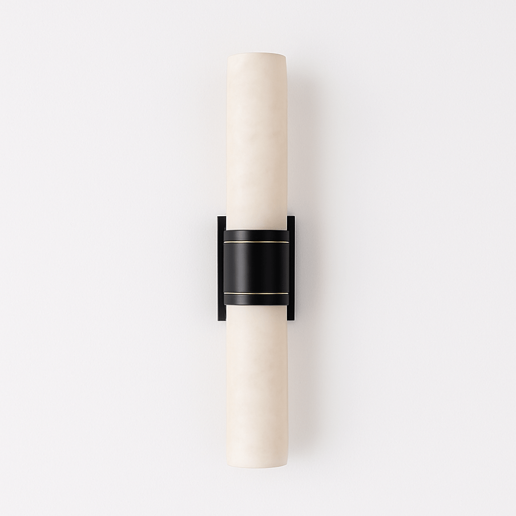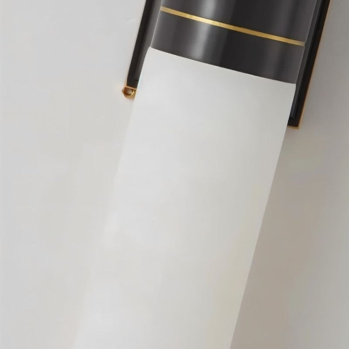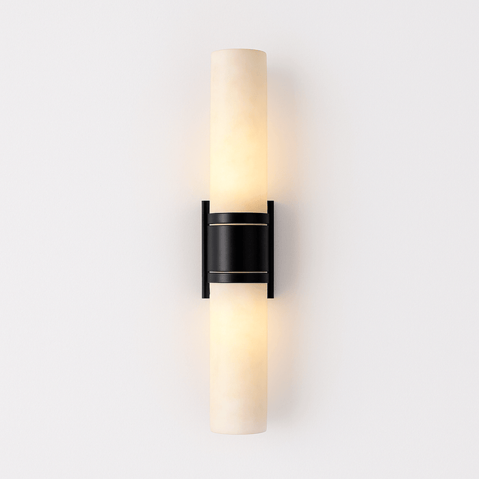 Trevix Wall Lamp combines marble and copper in a sleek, vertical design, casting a soft, diffused glow. The cylindrical light fixture features a contrasting black metal accent, enhancing its modern appeal. Ideal for bedrooms, hallways, or living spaces, it mounts seamlessly on walls for ambient or accent lighting. Available in two colors, this fixture blends luxury with functionality, making it a statement piece.
