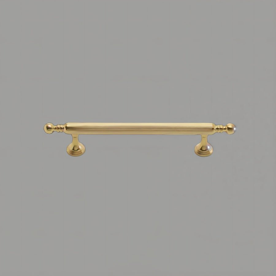These solid brass handles feature a stylish finish and a modern design with vertical lines for a touch of sophistication. The knurled texture adds a secure grip, ensuring both style and functionality in your space.