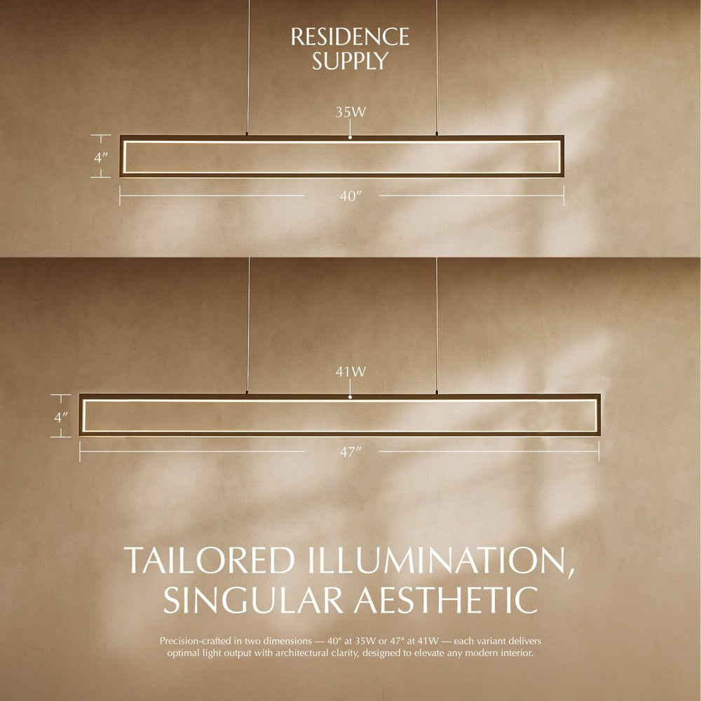 Product Dimensions: Small - 40" x 4" - 35W, Medium - 47" x 4" - 41W Weight: 4.6lbs (2.1kg), 5.5lbs (2.5kg) Material: Aluminum, Acrylic Finish: Black Light Source: Integrated LED Dimmable: Yes (Optional) Wattage: 35W, 41W Lumens: 100lm/watt Voltage: 90-260VAC Installation Type: Hardwired Chain/Cord Length: Up to 3.9ft (1.2 meter) Adjustable Cord: Yes Canopy/Backplate Dimensions: 15.7" x 3.9" Sloped Ceiling Compatible?: Upon Request Certifications: UL, CCC, CE, CQC, EMC, FCC, GS, LVD, PSE, ROHS, SAA, and VDE