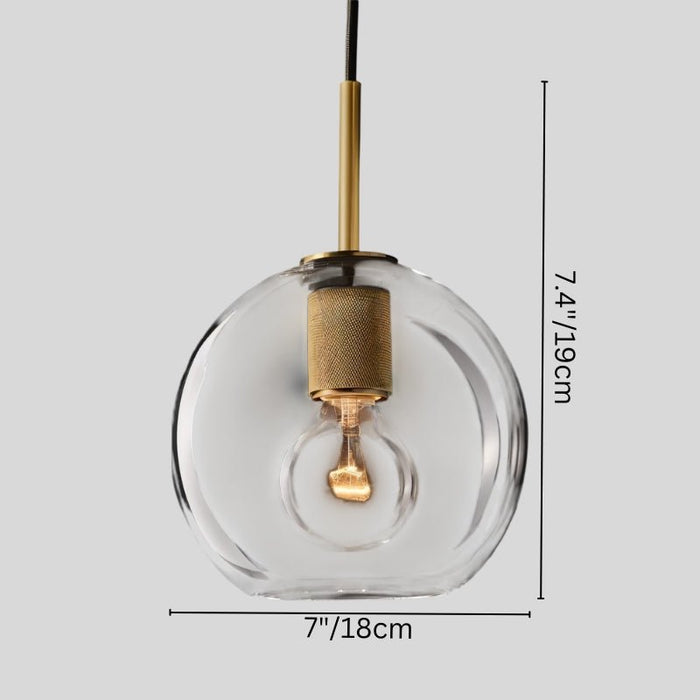 The Zafiris Pendant Light is a modern light fixture crafted from steel, copper, and glass, featuring a sleek spherical glass shade that encases an exposed bulb. Its slim brass rod and minimalist design blend industrial and contemporary aesthetics, making it ideal for dining areas, kitchen islands, or entryways. This versatile pendant light fixture enhances ambient lighting and works beautifully as a single installation or in clustered arrangements.