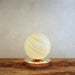 The Zeva table lamp is a sophisticated light fixture that combines brass, and glass for a modern aesthetic. Its design features a circular glass shade with subtle marbling, resting elegantly on a sturdy brass base. The glass globe emits a soft, ambient glow, perfect for creating a cozy atmosphere in bedrooms, living rooms, or reading nooks.