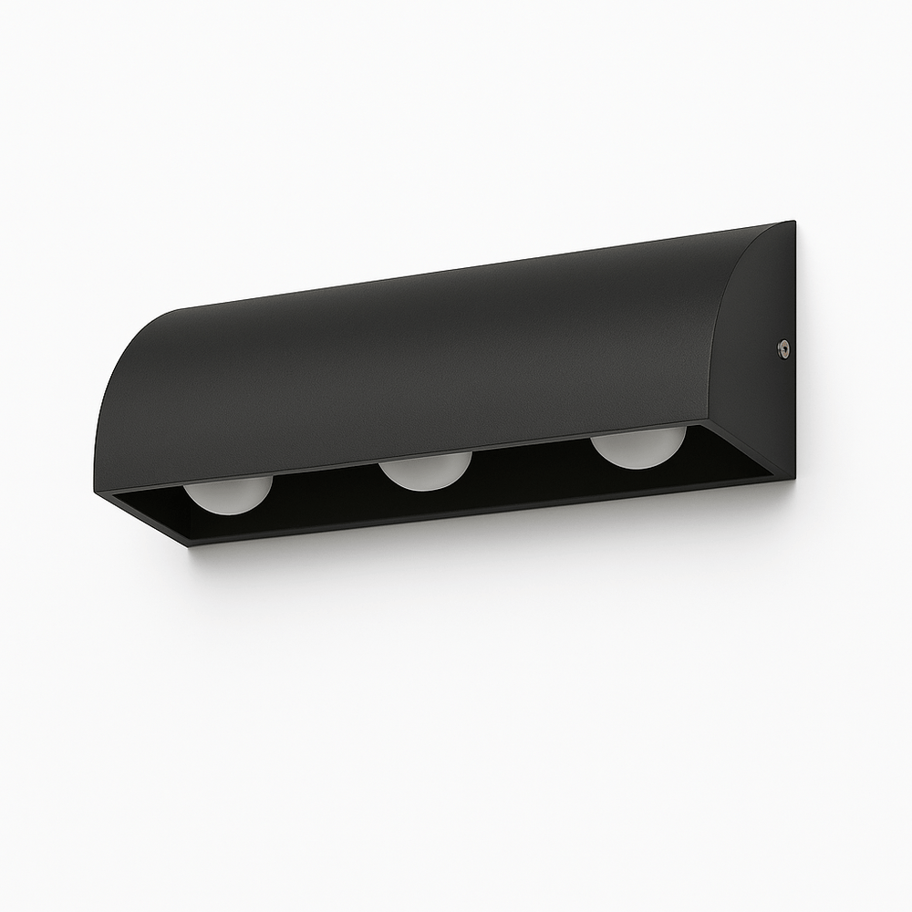 Matte gray aluminum with three lights for a clean, contemporary outdoor look.