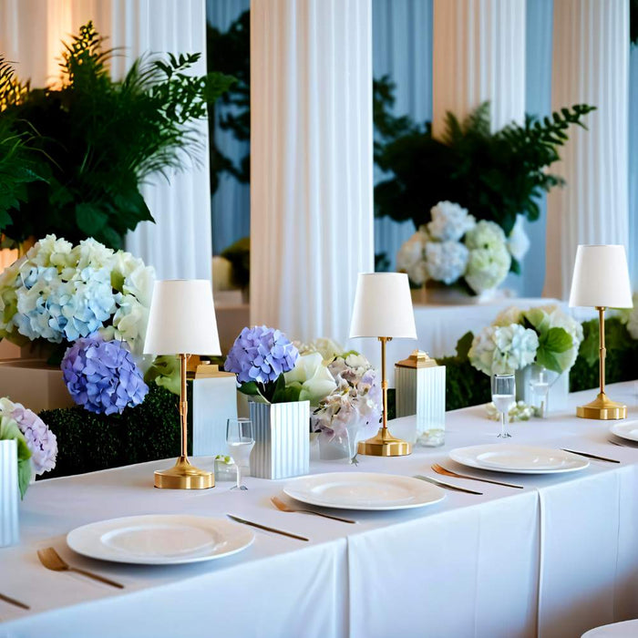 The Aradal Table Lamp is a rechargeable light fixture that blends timeless elegance with modern convenience. Crafted from aluminum with a classic brushed gold finish, the lamp features a tapered white fabric shade that gently diffuses light for warm, ambient illumination. Its slim, vertical stem and weighted base offer both stability and style, making it a standout piece in dining rooms, bedrooms, or upscale restaurants. Designed for cordless operation, this light fixture eliminates clutter and enhances refined interiors with a sophisticated silhouette and functional charm.