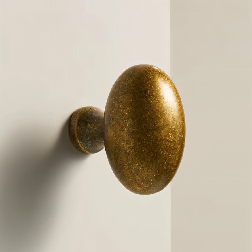 The Atlas Knob showcases an oval antique brass design with a smooth, ergonomic grip. Crafted from durable brass, it’s perfect for cabinets, drawers, and doors, complementing both traditional and modern interiors.