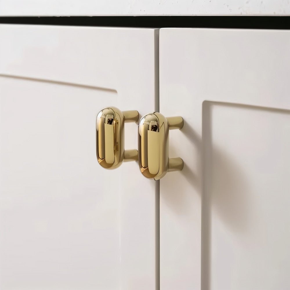 The Auryn Knob is a sleek, capsule-shaped brass handle designed for cabinets, drawers, wardrobes, and vanities. Its polished surface ensures a comfortable grip, while the solid brass construction offers durability and a luxurious finish. Ideal for modern and minimalist interiors.