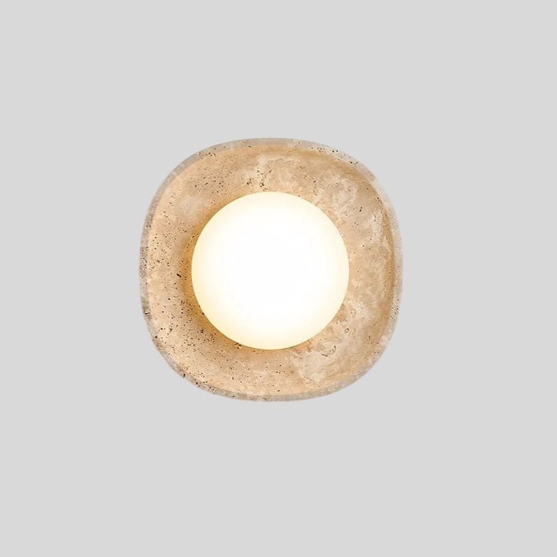 The Blipi wall lamp is a sophisticated light fixture that merges natural aesthetics with modern functionality. Crafted from Travertine and plastic, its organic-textured base enhances the ambiance with a warm, diffused glow. The spherical light source creates a soft, inviting atmosphere, making it ideal for living rooms, bedrooms, and hallways. Designed for wall installation, this light fixture serves as a striking decorative element while providing practical illumination. Its minimalist yet earthy appeal complements contemporary and nature-inspired interiors.
