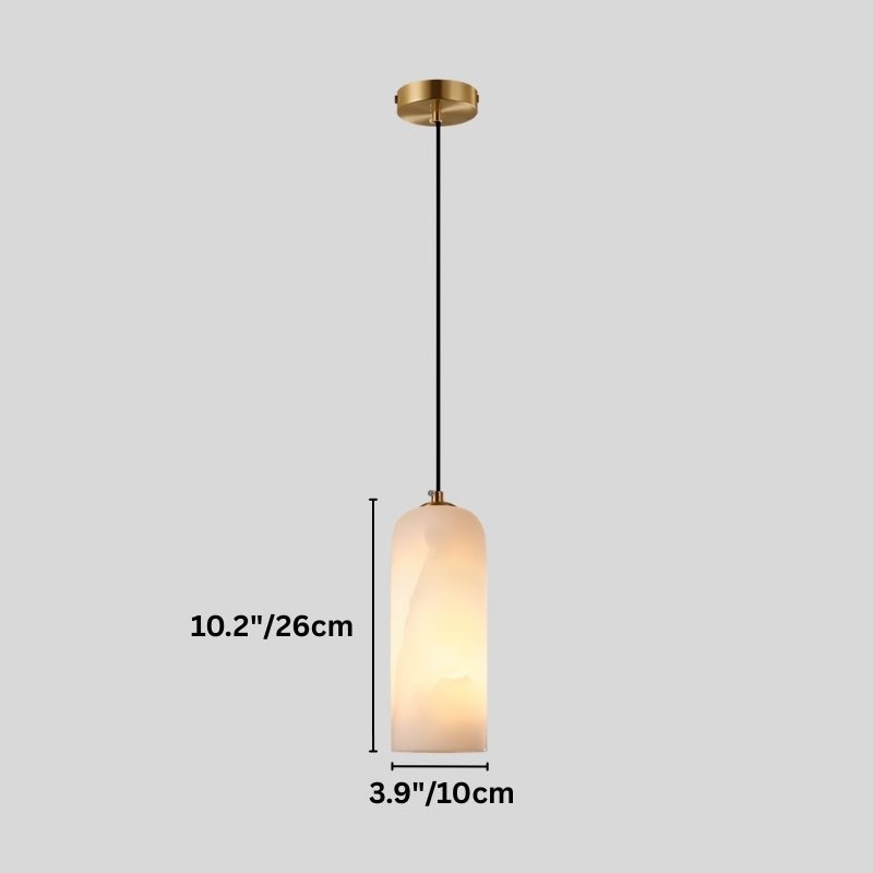 The Colenta pendant light features a sleek cylindrical alabaster shade suspended from a slim black rod with subtle brass detailing. Its minimalist design blends modern aesthetics with vintage appeal, casting a soft, diffused glow. Crafted from premium copper and alabaster, this light fixture enhances living rooms, dining areas, and bedrooms with warm, ambient lighting. Ideal for contemporary and classic interiors, this pendant light complements various decor styles while adding a touch of sophistication.