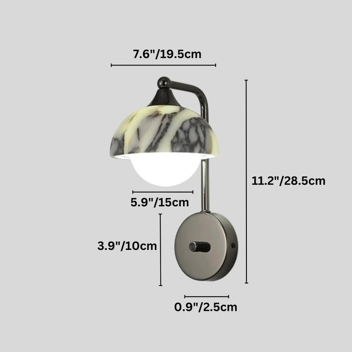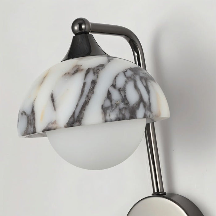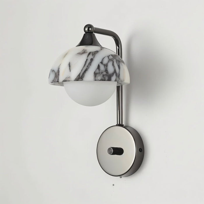 The Crickle wall lamp is a sophisticated light fixture that blends luxury and functionality. Designed with a sleek metal frame, a striking marble shade, and a durable plastic diffuser, it creates a refined contrast of textures. The curved arm supports the dome-shaped shade, allowing soft, diffused lighting to enhance bedrooms, hallways, and accent walls. This wall lamp is perfect for modern and classic interiors, adding an artistic touch while maintaining practicality.