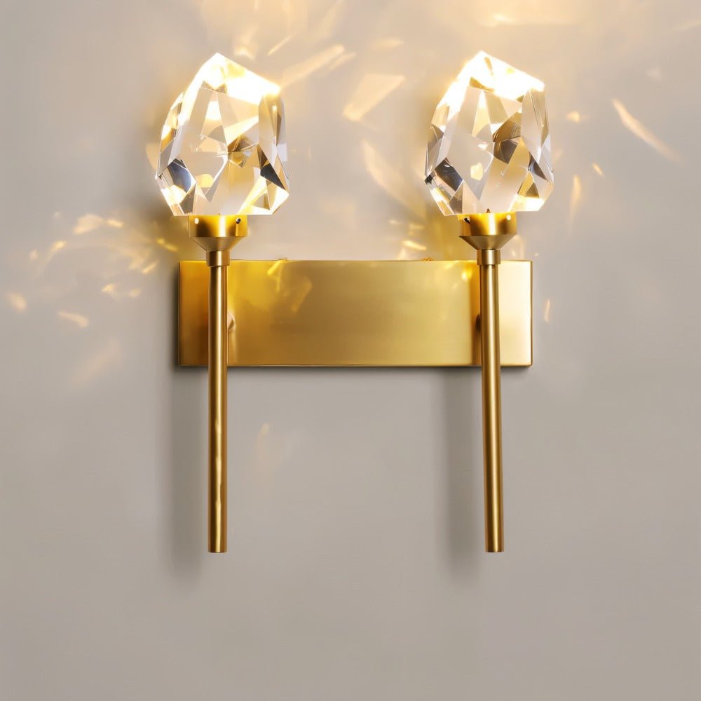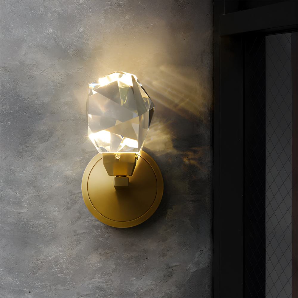The Cristal Wall Lamp stands out for its faceted crystal shade and brushed copper base, combining minimalist geometry with luxurious detailing for a timeless aesthetic.