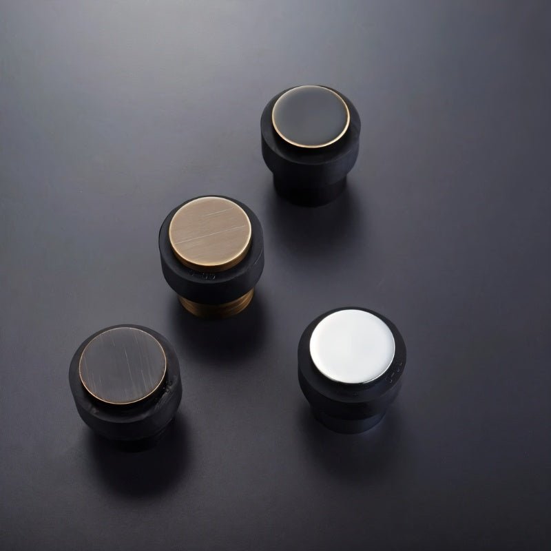 Desist Door Stopper is a heavy-duty rubber stopper that prevent doors from slamming shut, protecting your walls and floors. The classy brass design adds a touch of elegance to any room, and the non-magnetic catch ensures compatibility with electronic devices. Durable and eco-friendly, these door stops are perfect for both home and office use, combining functionality with a sleek look for a lasting impression.