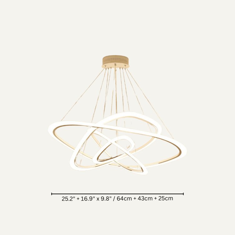 Material: Iron, Acrylic Finish: White, Gold Light Source: Integrated LED Dimmable: Upon Request Voltage: 90-260VAC Installation Type: Hardwired Chain/Cord Length: Up to 3.9ft (1.2 meter) Adjustable Cord: Yes Sloped Ceiling Compatible?: Yes Certifications: UL, CCC, CE, CQC, EMC, FCC, GS, LVD, PSE, ROHS, SAA, and VDE