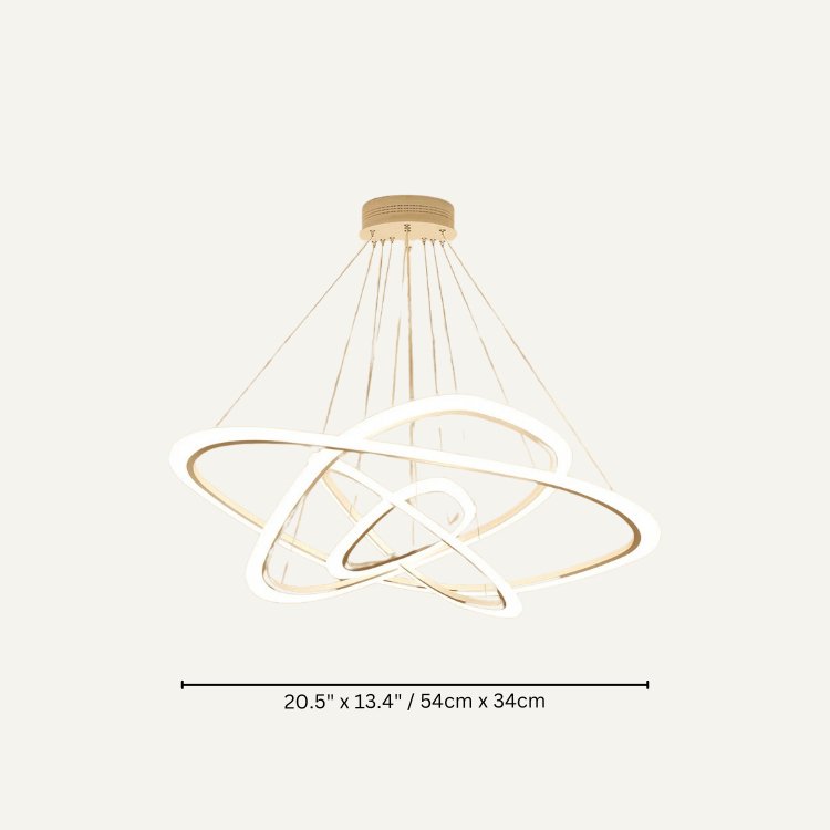 The Éala Chandelier is a stunning centerpiece that seamlessly blends sophistication with contemporary design. Crafted with irregular rings, this chandelier boasts a sleek and modern aesthetic, adding a touch of avant-garde charm to your dining or living space. Its unique, asymmetrical form creates a captivating visual impact, making it a true statement piece for your home. The sleek lines and modern allure make it an ideal choice for almost any interior setting!
