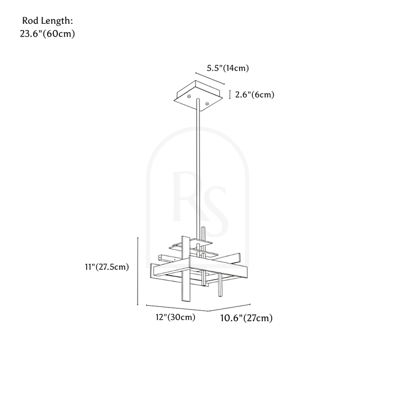 Product Dimensions: L11.8"(30cm) x W10.6"(27cm) x H10.8"(27.5cm) Wattage (Lumens): 18W (1980lm) Material: Iron Finish: Black Light Source: Integrated LED Dimmable: Upon Request Voltage: 90-260VAC Installation Type: Pipe Erected Chain/Cord Length: Up to 23.6 Inches (60cm)