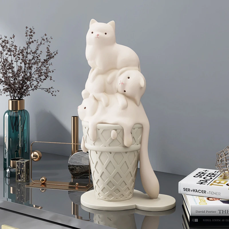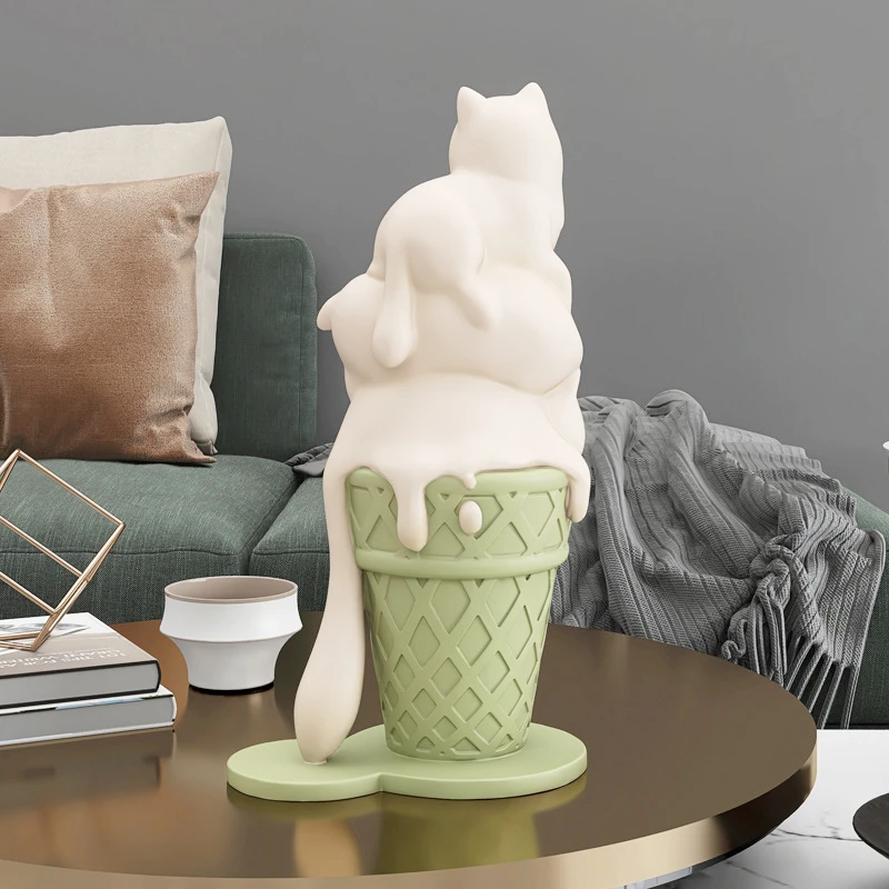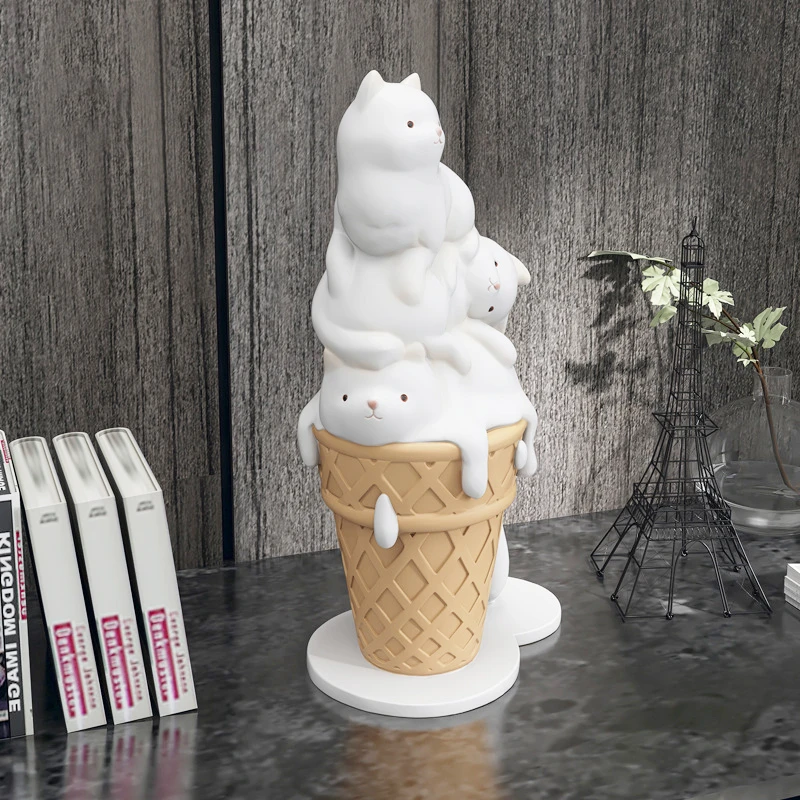 Icee es una adorable escultura de helado de gato que resalta un aura encantadora y genera un ambiente agradable.