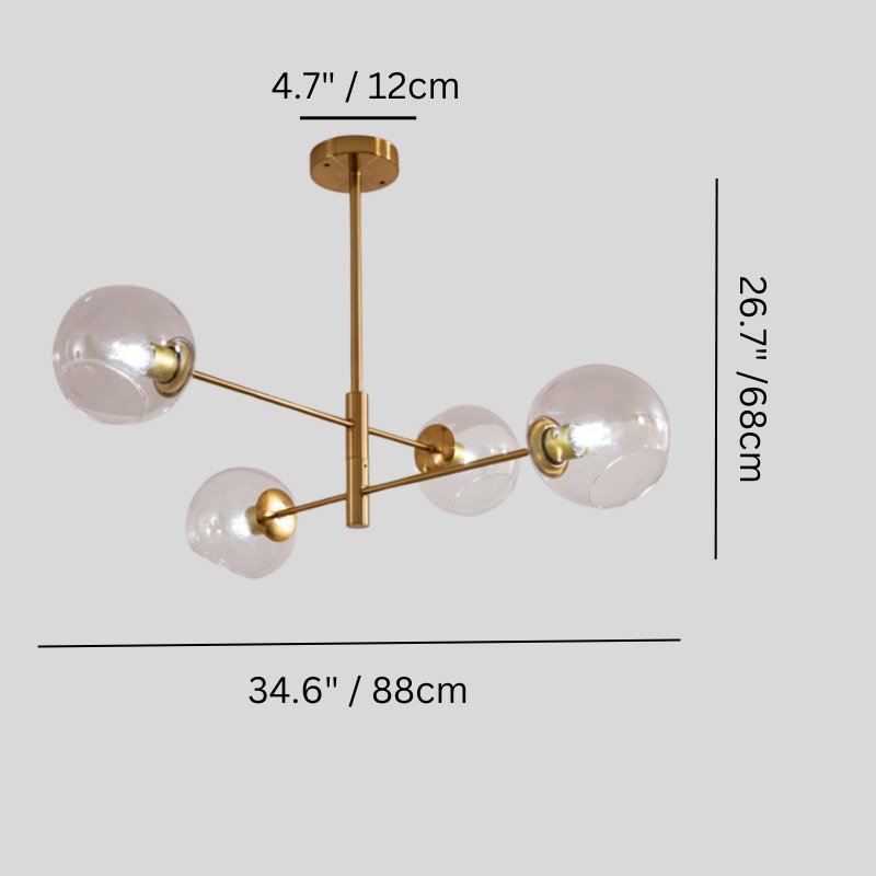 Material: Glass, Iron Finish: Clear, Red, Grey Light Source: LED Light Bulb (replaceable) Number of Bulbs: 4, 6, 8 Bulb Included: Yes Dimmable: Yes (Optional) Voltage: 90-260VAC Installation Type: Pipe Erected Chain/Cord Length: Up to 4.9ft (1.5 meter) Adjustable Cord: No Canopy/Backplate Dimensions: D4.7"(12cm) Sloped Ceiling Compatible?: Upon Request Certifications: UL, CCC, CE, CQC, EMC, FCC, GS, LVD, PSE, ROHS, SAA, and VDE