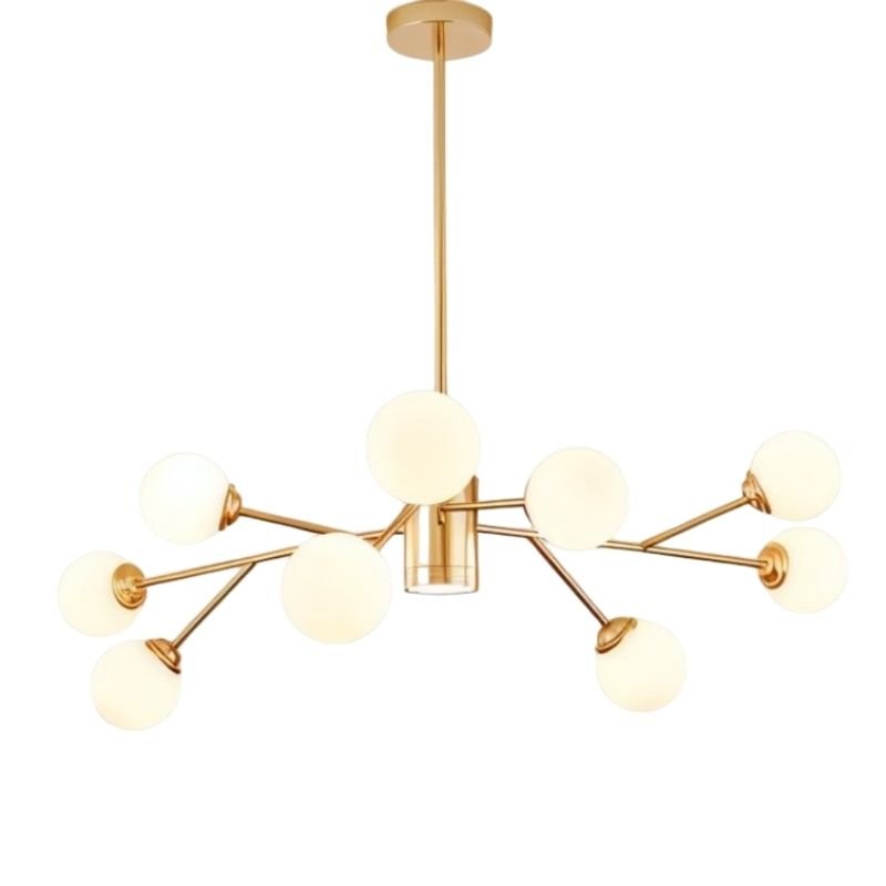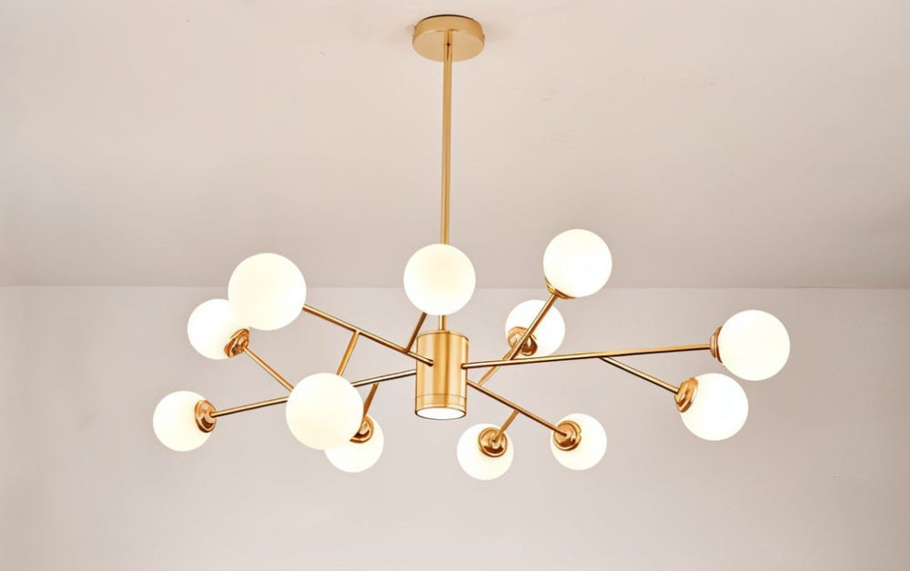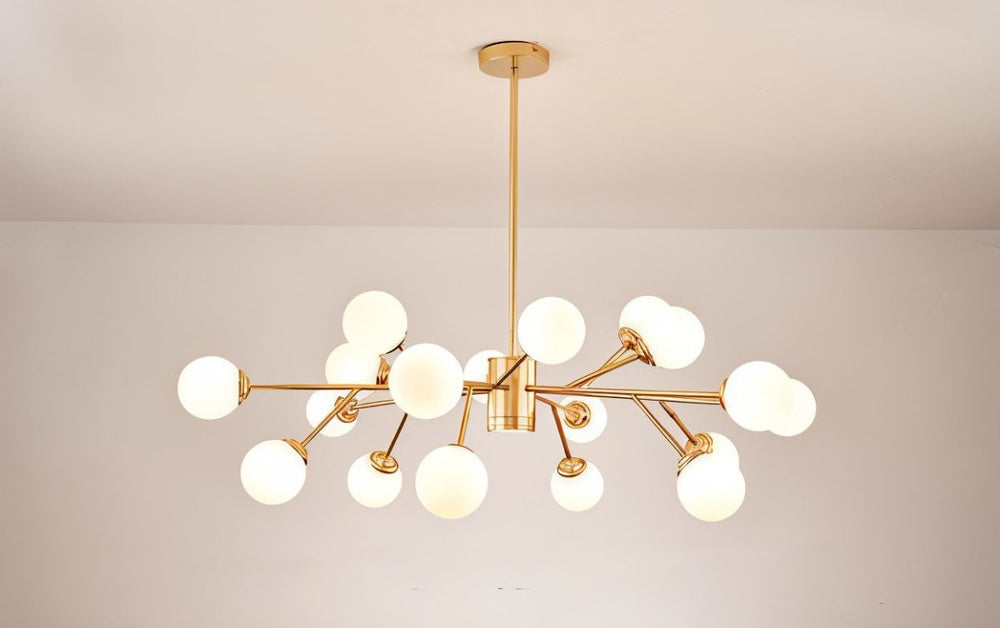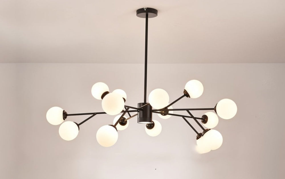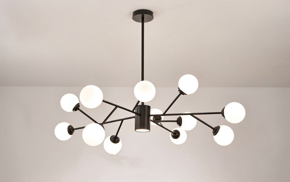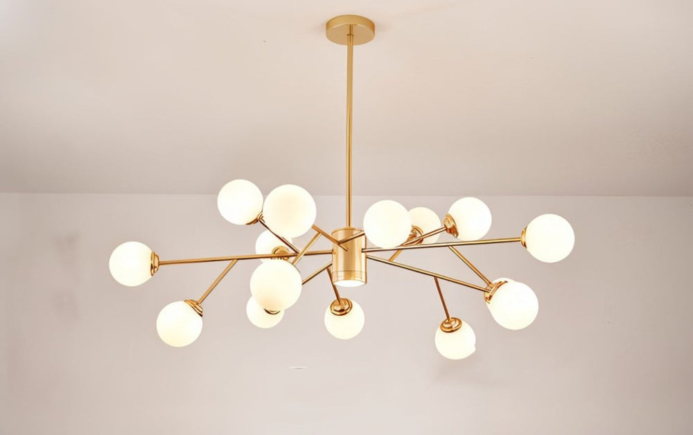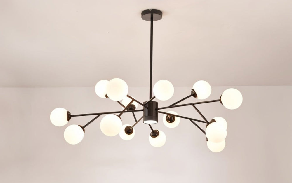 The radiating arms and numerous globes create a dramatic statement.