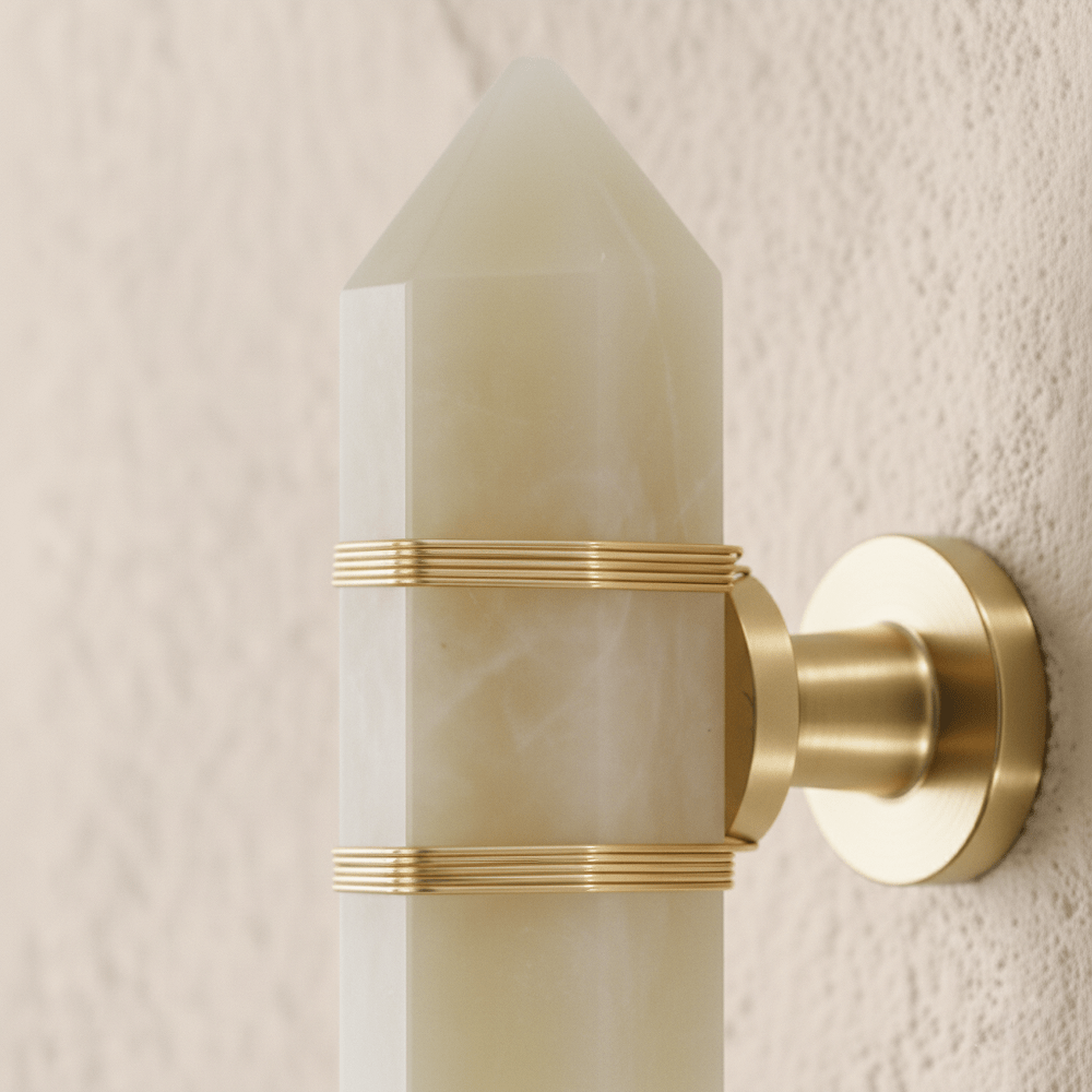 Hine features a striking crystal prism design framed with brass accents, creating a bold geometric aesthetic. The faceted crystal body reflects light beautifully, adding depth and elegance to any space. Ideal for cabinets, wardrobes, and drawers, this handle blends modern luxury with timeless craftsmanship. The brass detailing enhances durability while complementing contemporary and classic interiors.