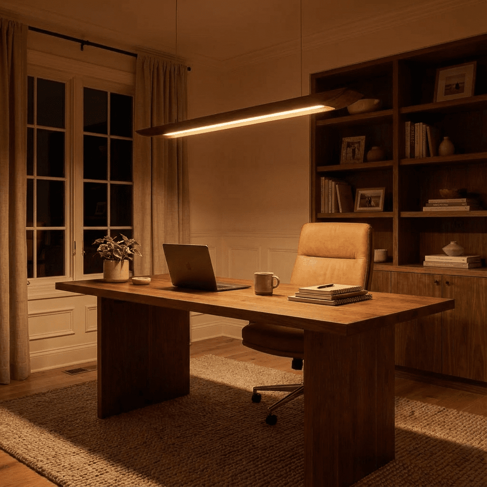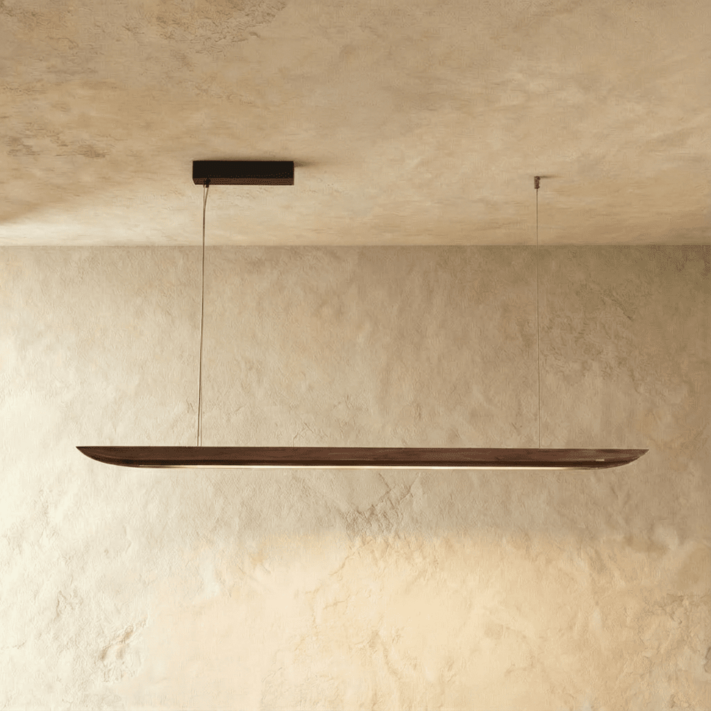 The Illuvia Pendant Light features a minimalist, elongated design crafted from premium wood, offering warm, even illumination. This light fixture serves as a striking centerpiece, ideal for dining rooms, living areas, or offices. Its sleek shape complements modern, Scandinavian, or minimalist interiors, while the wooden material adds a touch of natural warmth and elegance.