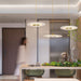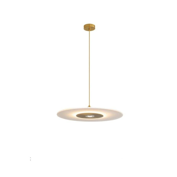 The Diskos Pendant Light is crafted from a frosted acrylic body combined with a polished metal center disc, creating a sleek and minimal design that perfectly complements modern interiors.