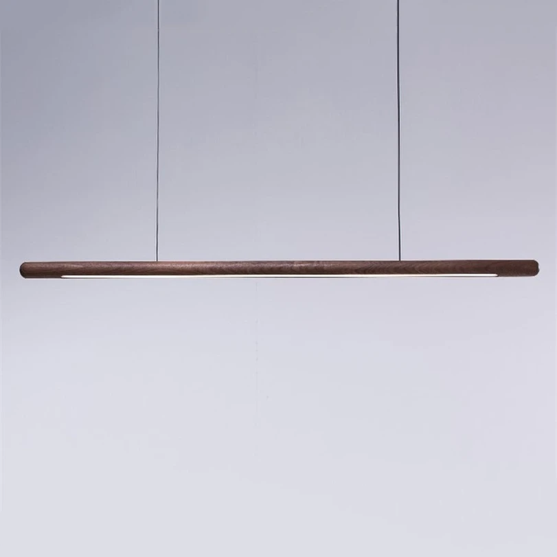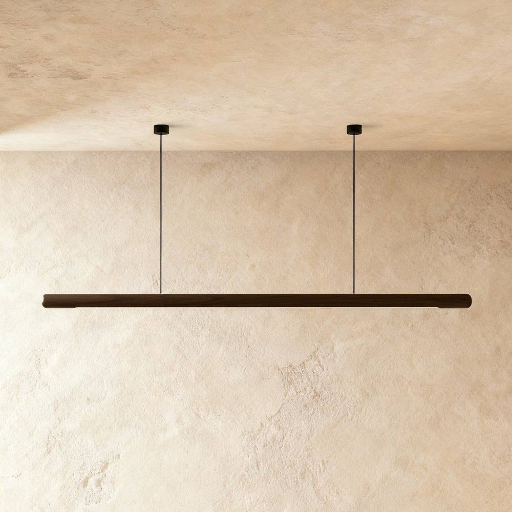 The Svelte Pendant Light is crafted from either black walnut or ash wood, providing a sleek and elegant look to any dining or kitchen area.
