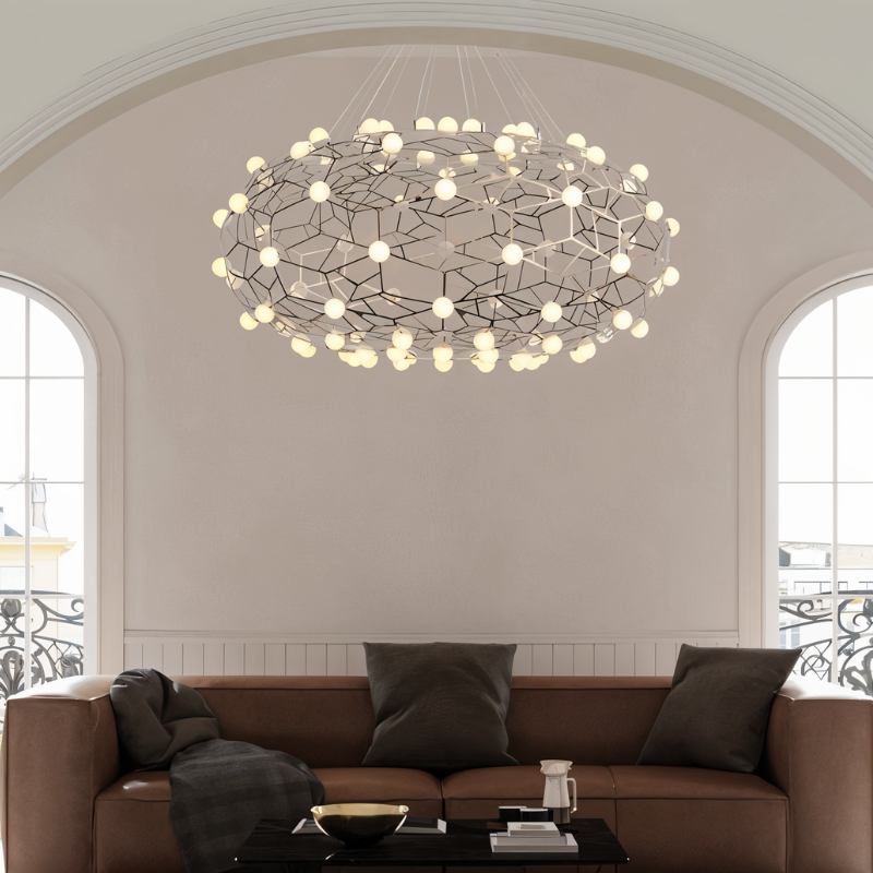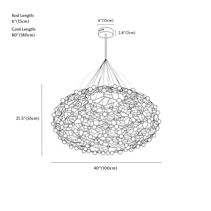 The Gypsophila Chandelier features energy-saving LED lights that are highly efficient, offering up to 50,000 hours of operating life. These LEDs are available in two different light modes—warm and cool white—and are designed to provide even and bright lighting with a voltage range of 90-260V. This ensures not only a captivating luminous effect but also significant energy savings over time, making it a practical and eco-friendly choice for your home.