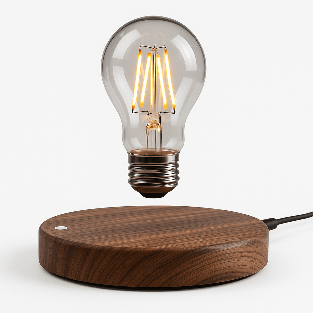 A floating light bulb powered by induction and magnets for an eye-catching, modern look.