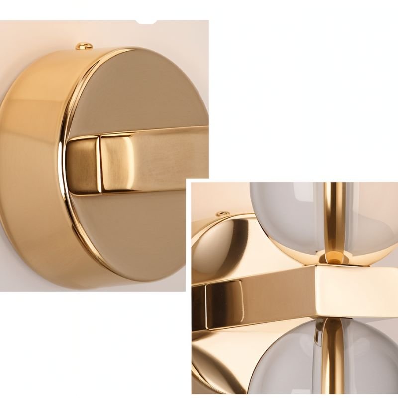 The Alverta Wall Lamp is crafted with a metal stem and adorned with glass balls, creating a sophisticated tiered design that enhances any living space.
