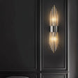 The Amadi Wall Lamp is made of delicate crystal rods and polished stainless steel.