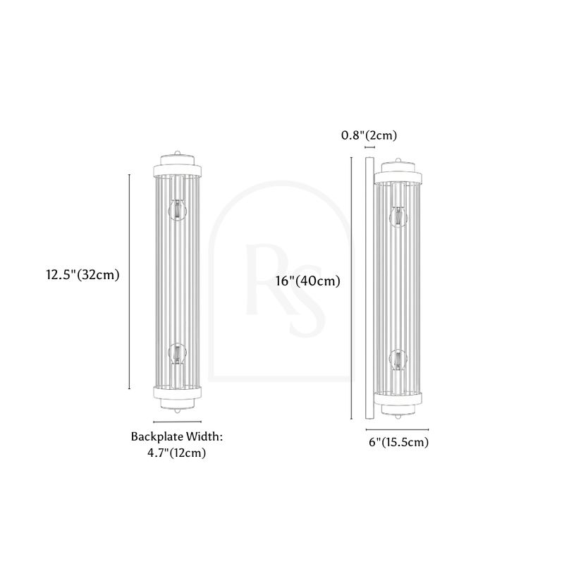 Wattage (Lumens): 12W (1200lm) Weight: 3.3lbs (1.5kg), 4.4lbs (2kg) Material: Glass, Iron Finish: Black, Gold Light Source: LED Light Bulb (replaceable) Bulb Included: Yes Number of Bulbs: 2 Bulb Base: E14 Dimmable: Upon Request Voltage: 90-260VAC Installation Type: Wall Mount Canopy/Backplate Dimensions: 15.7"(40cm) x 3.9"(10cm) Certifications: UL, CCC, CE, CQC, EMC, FCC, GS, LVD, PSE, ROHS, SAA, VDE