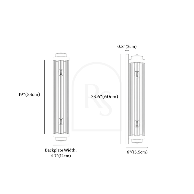 The Luxor Wall Lamp is constructed with a metallic body available in black and gold finishes, and features glass rods that form an airy cage for even light distribution. For installation, it includes all necessary mounting hardware and accessories. For your safety and proper setup, we highly recommend using a professional installer.
