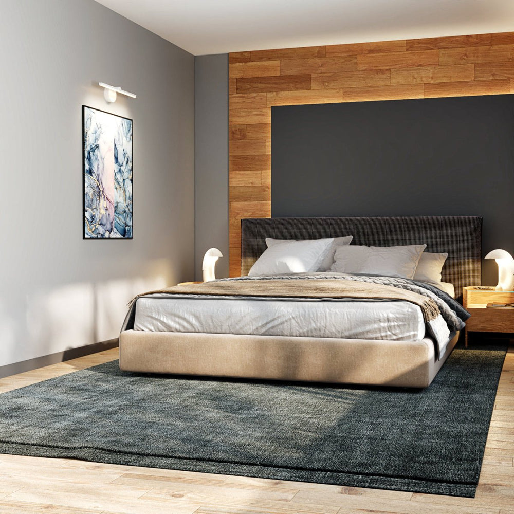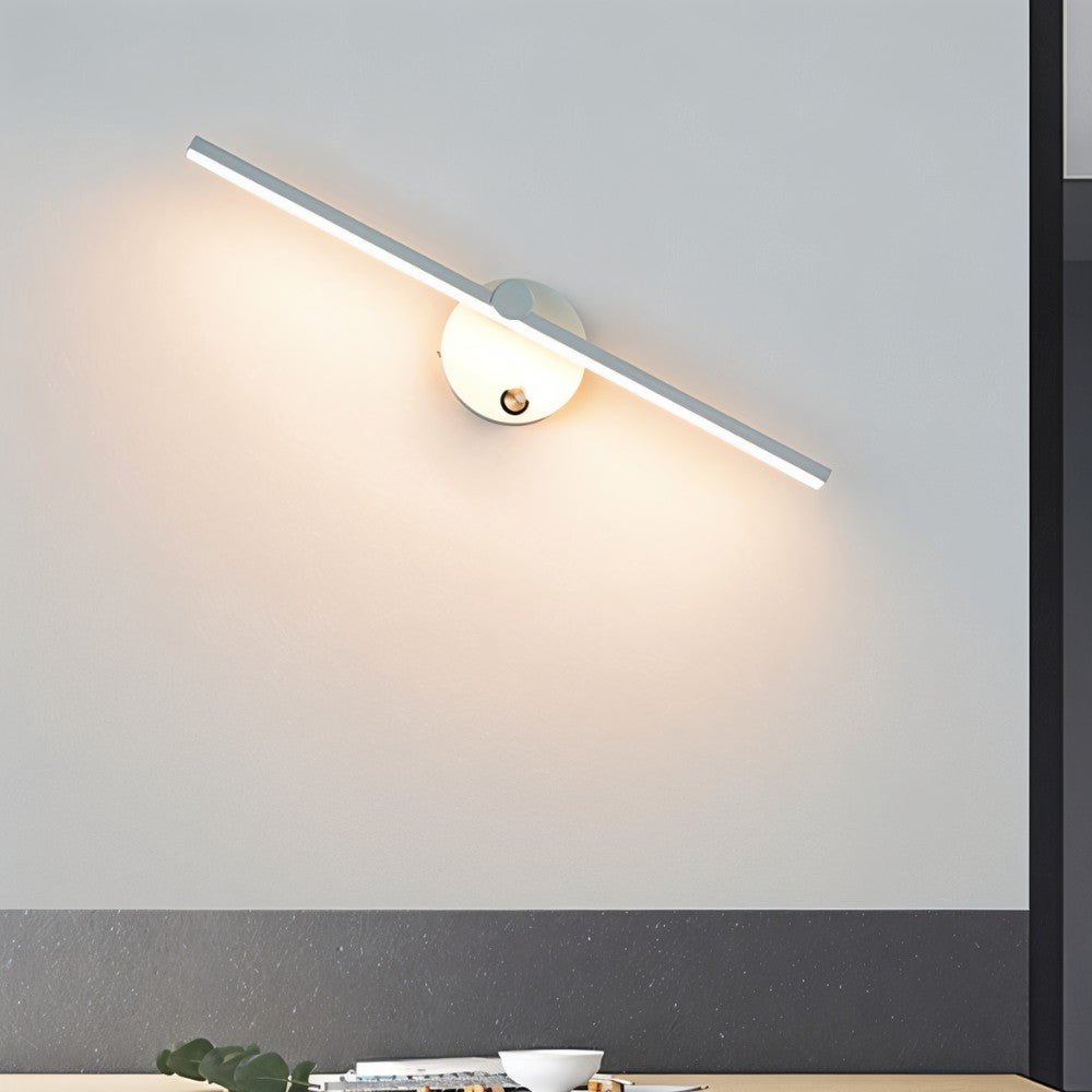 A minimalist wall lamp adds modern elegance and functional lighting to bedrooms.