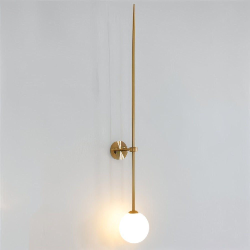 La Pensile Lámpara de pared es la luz ideal para cualquier habitación con su diseño geométrico sencillo. Este aplique tiene un diseño elegante con una larga varilla de hierro y una pantalla blanca de vidrio opalino soplado que emite un delicado resplandor. Es una pieza de iluminación art Deco que presenta acabados metálicos en oro y negro para darle mayor encanto. Su hogar lucirá genial con Pensile, agregando un toque exquisito a cualquier habitación.