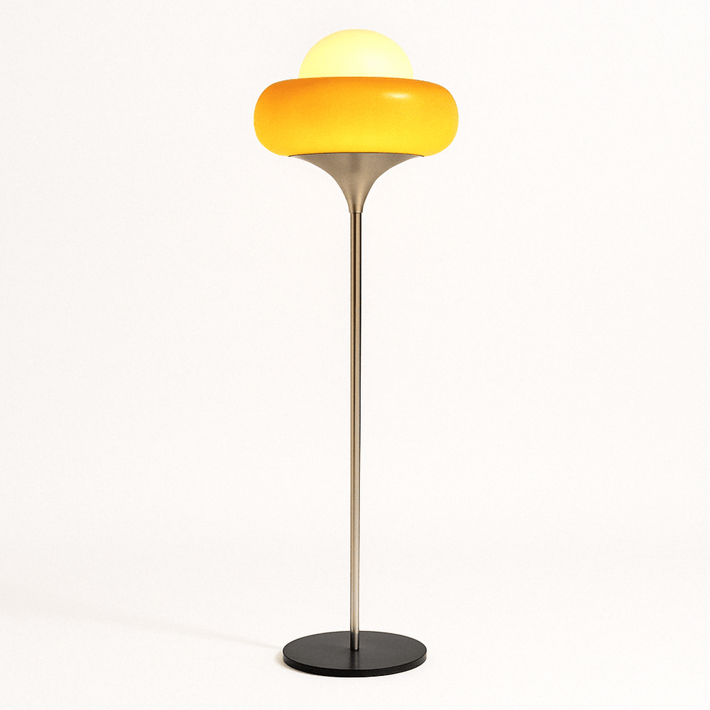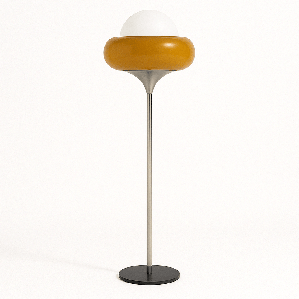 La lámpara de pieCrostata combina practicidad con estética. Esta moderna lámpara de pie de mediados de siglo, que se inspira en la década de 1970, presenta una pantalla de vidrio hecha a mano que suaviza la proyección de la luz, agrega brillo y un toque de diseño, lo que le da a la pieza un aire muy vintage. Con Crostata, puedes darle fácilmente a cualquier área una sensación elegante y moderna.