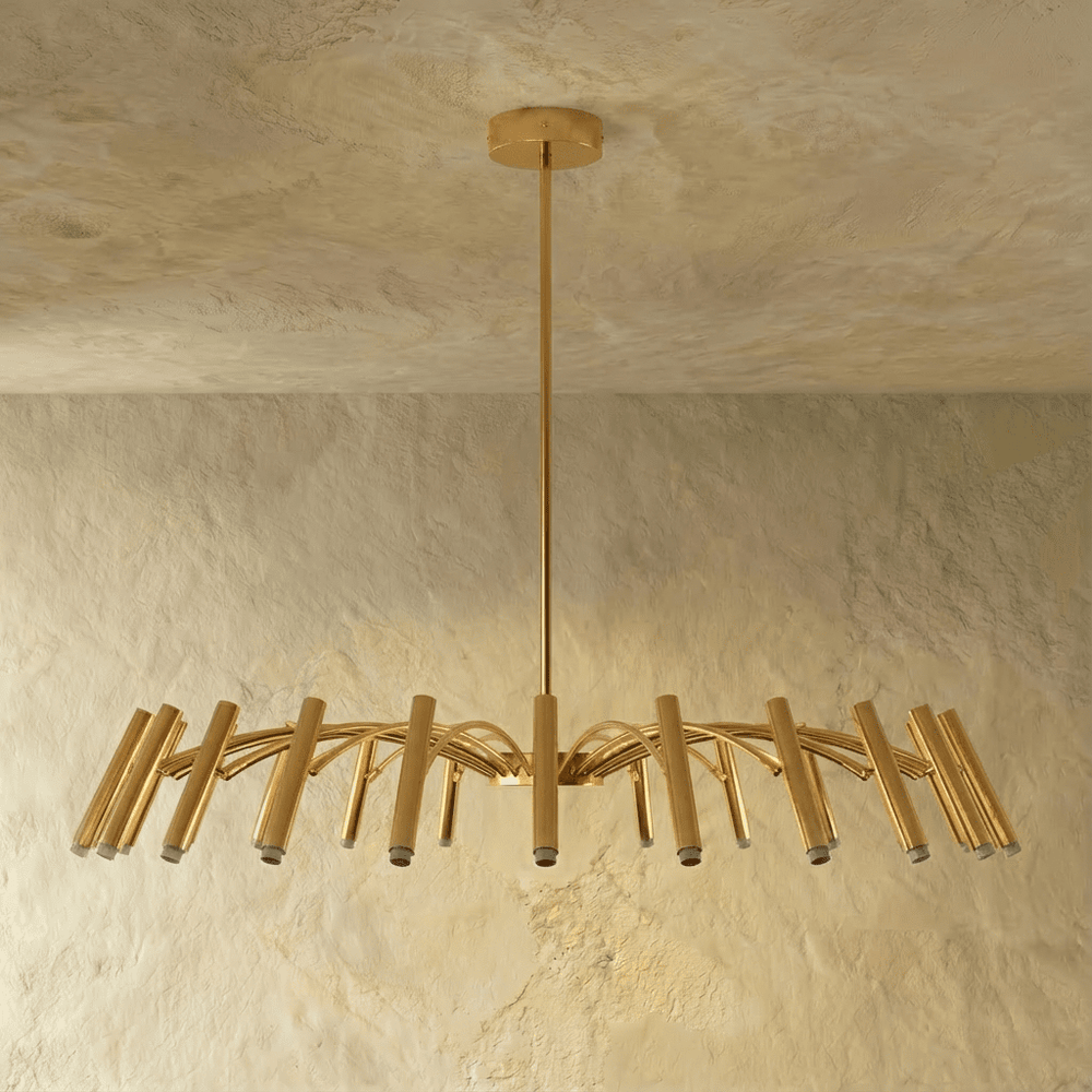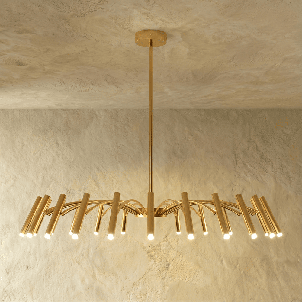 The LEDs in the Funale Chandelier are integrated and designed to last over 100,000 hours, ensuring longevity and durability. They are not replaceable, as the unit is built with LEDs that are meant to last for the entirety of the fixture's lifespan. This design choice enhances the chandelier's reliability and eliminates the need for routine bulb replacement, providing a maintenance-free lighting solution that is both practical and cost-effective for modern living spaces.