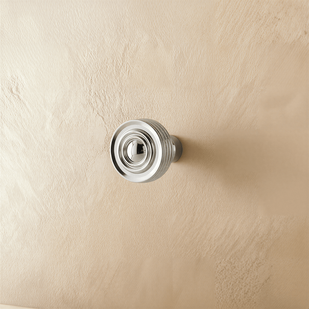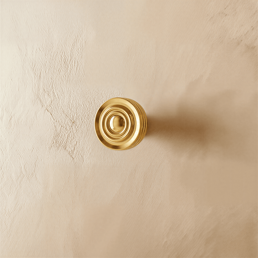 The Lark Knob, crafted from durable brass, features a striking concentric ring design with a ridged surface for enhanced grip and visual appeal. Perfect for cabinets, drawers, and furniture, it suits residential and commercial spaces, complementing modern and transitional interiors with its polished metallic finishes.