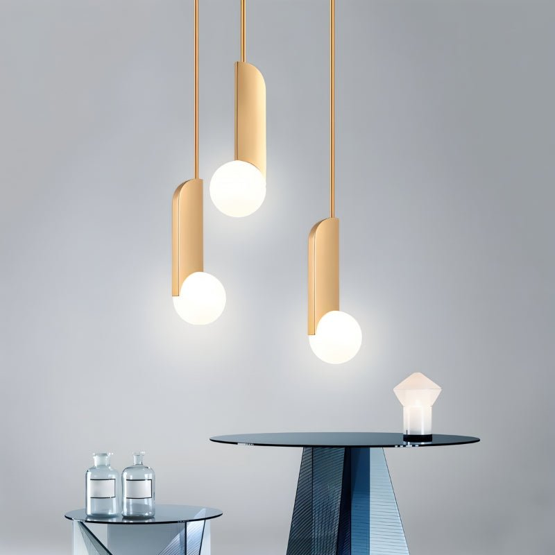 The Leoriel Pendant Light is a modern light fixture crafted from metal and iron, featuring a sleek rod and frosted glass globe for soft, diffused illumination. One pendant has a straight vertical design, while the other includes a curved metal accent, adding depth and architectural appeal. Ideal for bedrooms, dining areas, and hallways, it enhances modern, mid-century, and minimalist interiors. This versatile light fixture combines functionality with a refined aesthetic, making it a striking addition to any space.